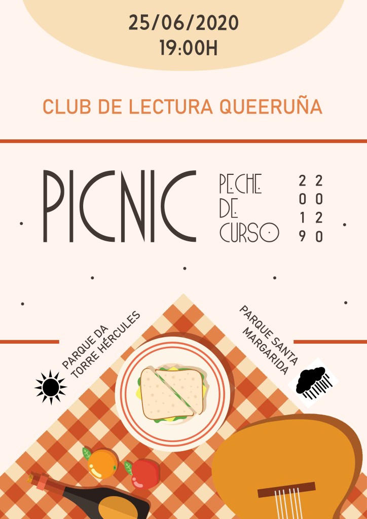 Arrinca a programación especial As municipais entenden 2020 co tradicional picnic de fin de tempada do club de lectura LGTB. Será o próximo xoves, 25 de xuño, ás 19h. Como vén sendo habitual mantemos a esperanza de que sexa unha tarde soleada e poder ter a Torre de Hércules de fondo, mais vendo a predición en meteogalicia empezamos a pensar en que será no Parque Santa Margarida (para variar…).
