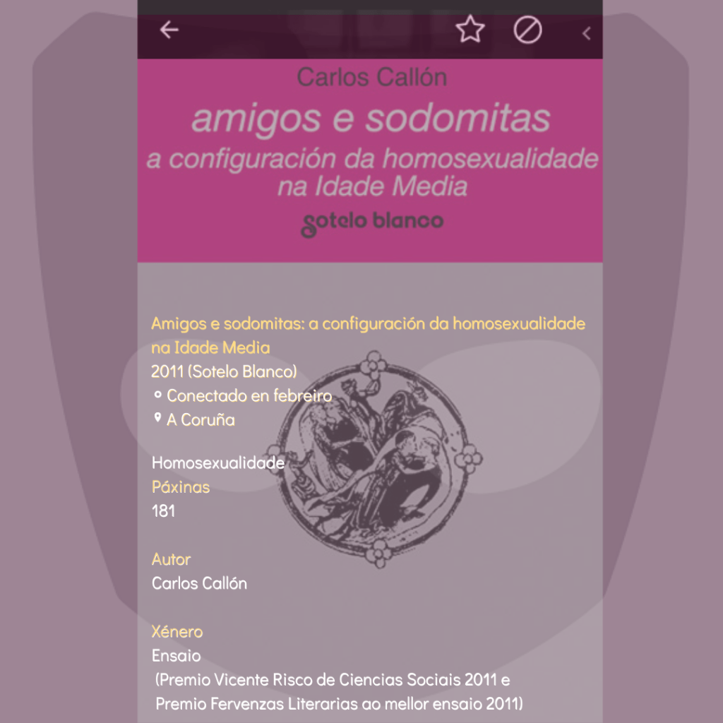 Hoxe no noso Grindr Bibliotecario presentámosche “Amigos e sodomitas: a configuración da homosexualidade na Idade Media”, un ensaio de Carlos Callón, político e profesor ribeirense, no que fala de que, a pesares do que se pode pensar inicialmente, nos primeiros mil anos de historia do Cristianismo as relacións homosexuais estaban desposuídas de calquera connotación negativa, e incluso estaban ben vistas pola sociedade. Isto durou ata a configuración do pecado-delito da sodomía, que trouxo consigo a intolerancia radical e a persecución das mesmas.